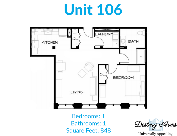 | 106 | 1 Bedroom | 1 Bathroom | 848 | Available January 2026 | $1,600 | View Floor Plans | |