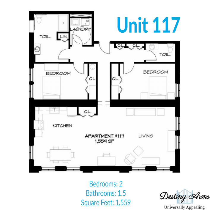 | 117 | 2 Bedroom | 1.5 Bathroom | 1,559 | Leased | View Floor Plans | ||