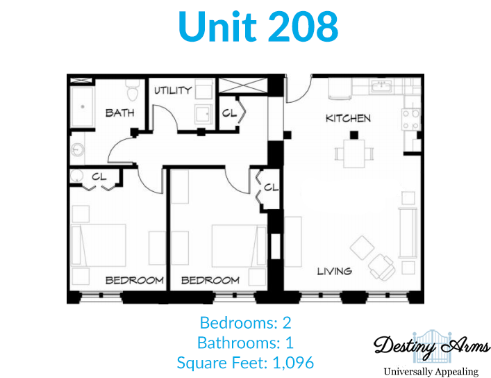 | 208 | 2 Bedroom | 1 Bathroom | 1,096 | Leased | View Floor Plans | 3D Tour | |