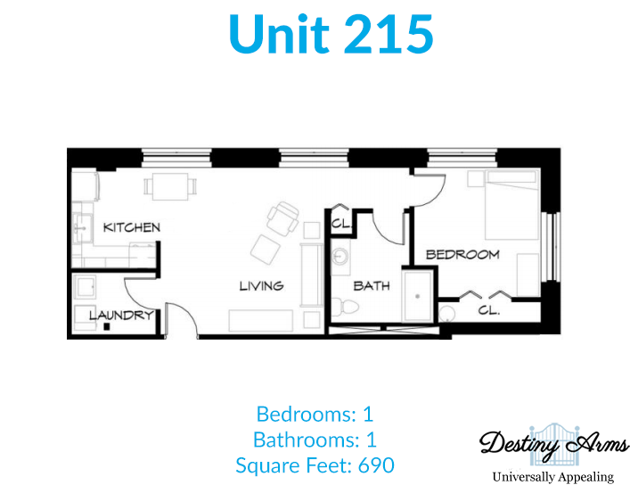 | 215 | 1 Bedroom | 1 Bathroom | 690 | Leased | View Floor Plans | ||