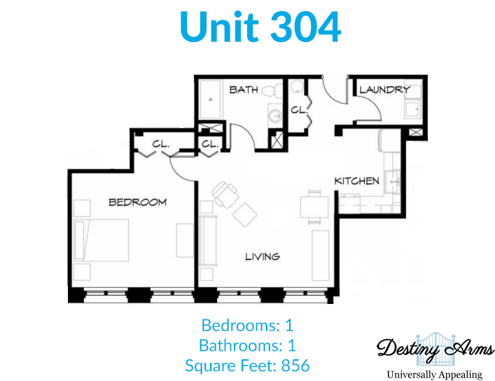| 304 | 1 Bedroom | 1 Bathroom | 856 | Leased | View Floor Plans | ||