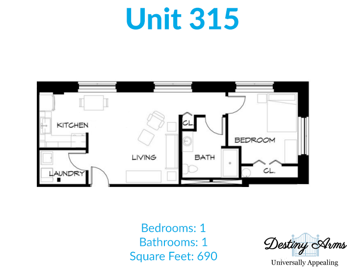 | 315 | 1 Bedroom | 1 Bathroom | 690 | Leased | View Floor Plans | ||